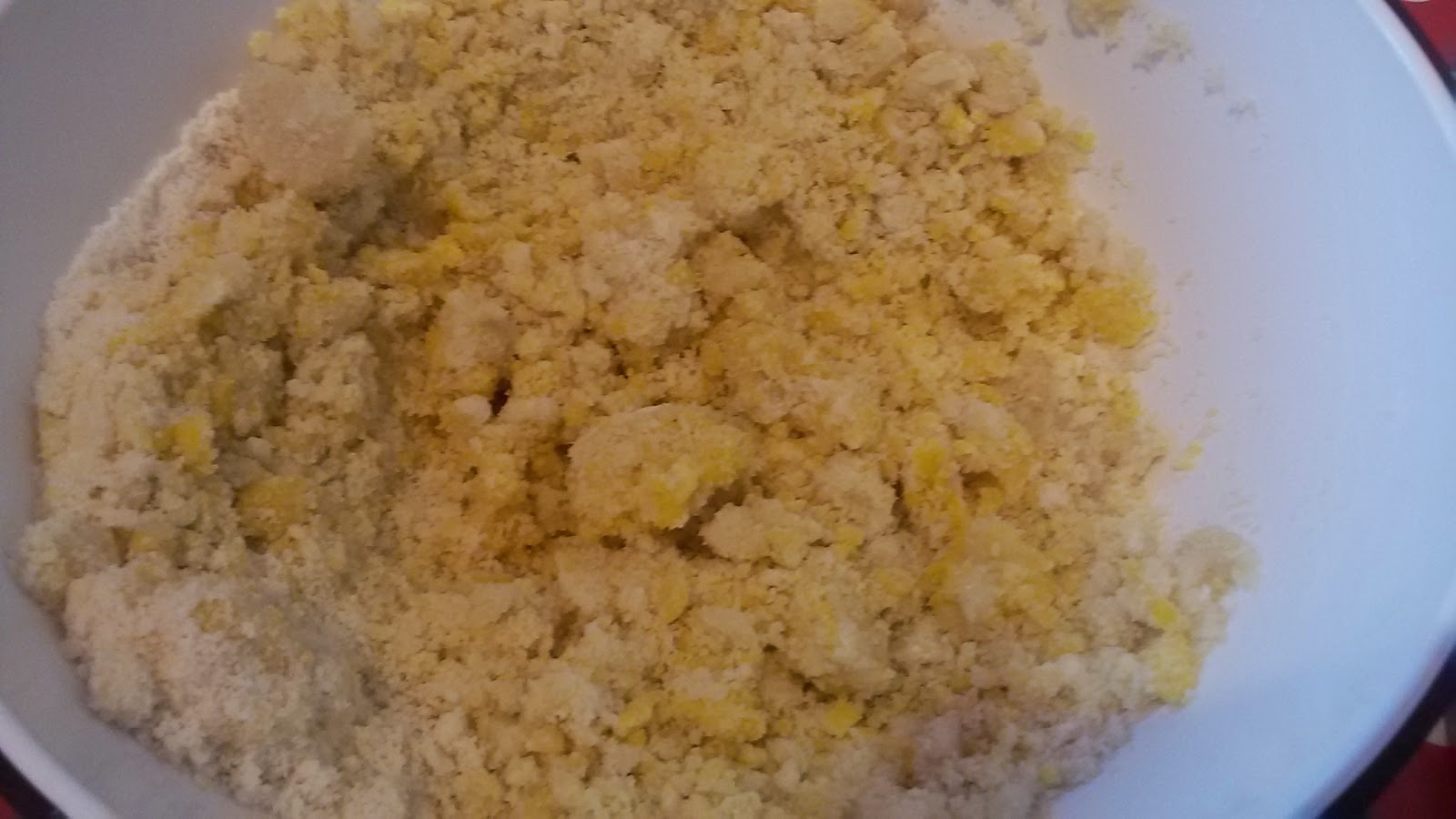 In una terrina mettete la farina di riso, quella di mandorle, il lievito e l’aroma di mandorle amare, mentre in un’altra mettete lo zucchero. Dividete l’albume dal tuorlo ed aggiungete quest’ultimo alle farine e a parte montate a neve gli albumi con lo zucchero. All’impasto con le farine mentre continuate a miscelare, aggiungete l’olio e metà dell’acqua richiesta. Incorporate poi lentamente gli albumi montati a neve mescolando l’impasto dal basso verso l’alto. A questo punto aggiungete la poca acqua rimanente e mescolate bene fino ad ottenere un composto denso e spumoso. Imburrate o oleate una teglia e versate il tutto.