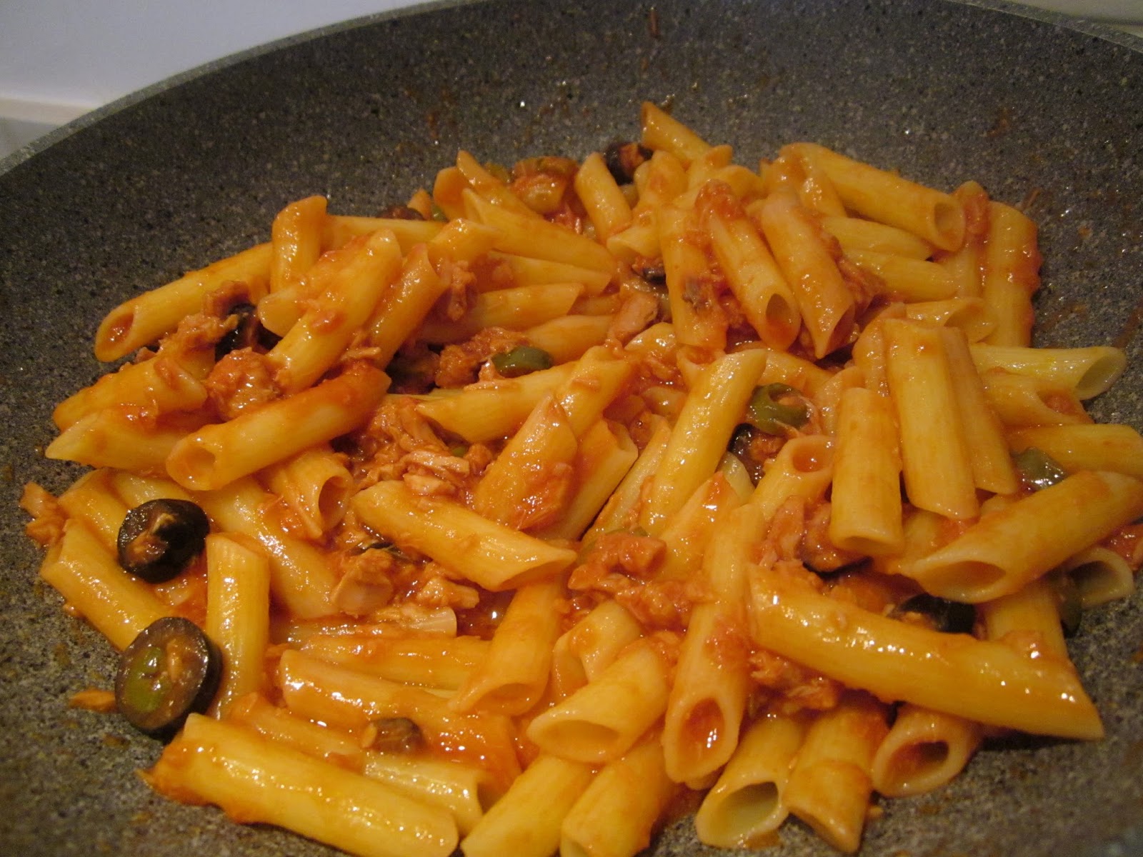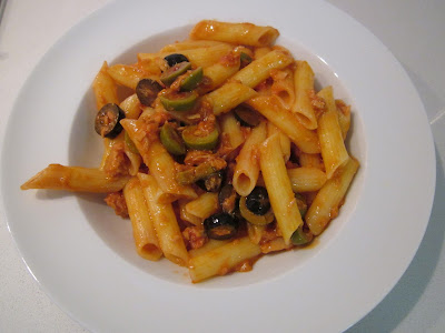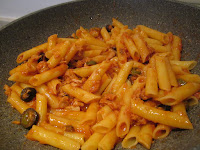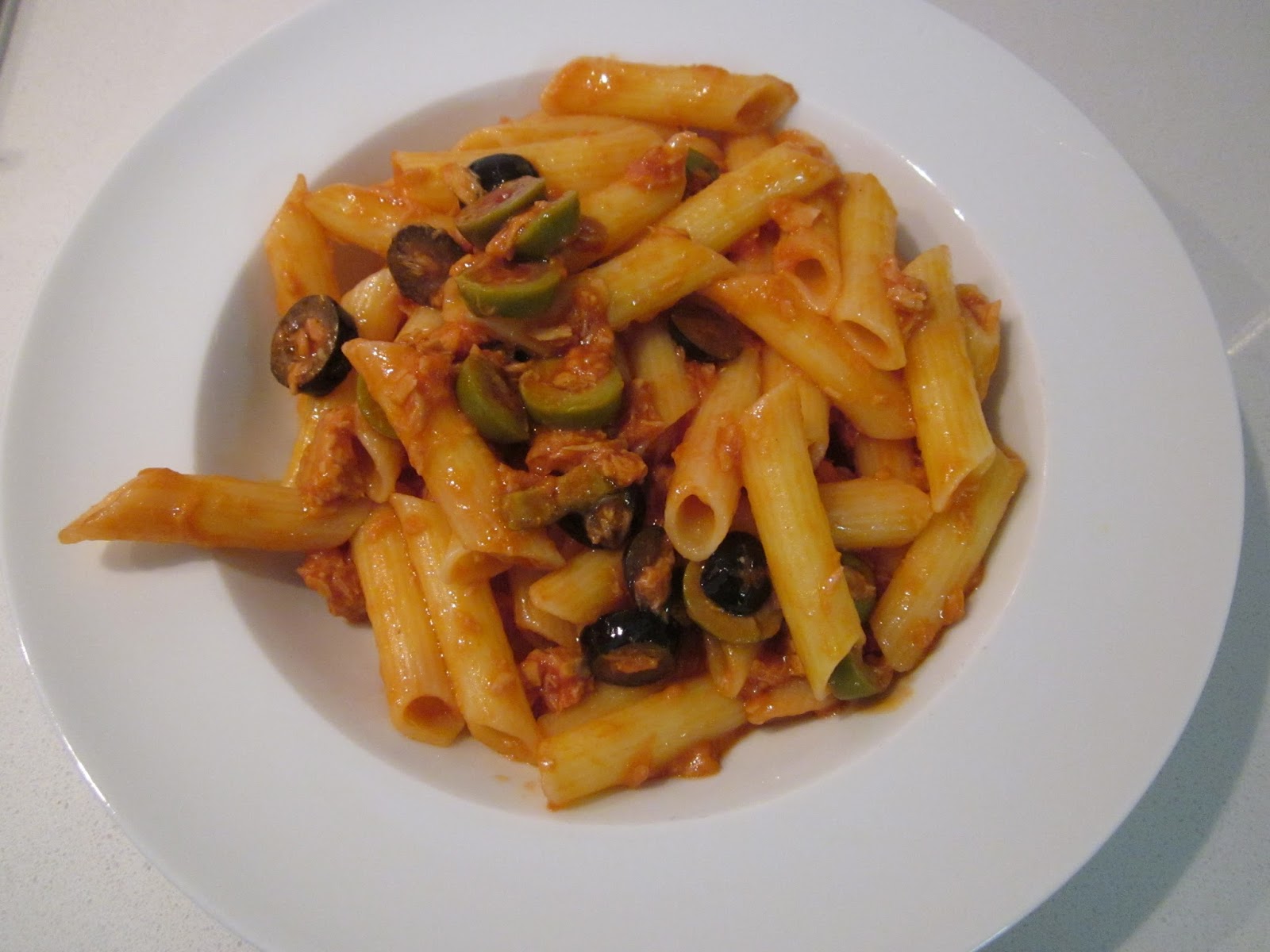 Pennette con sugo di pomodoro, tonno e olive