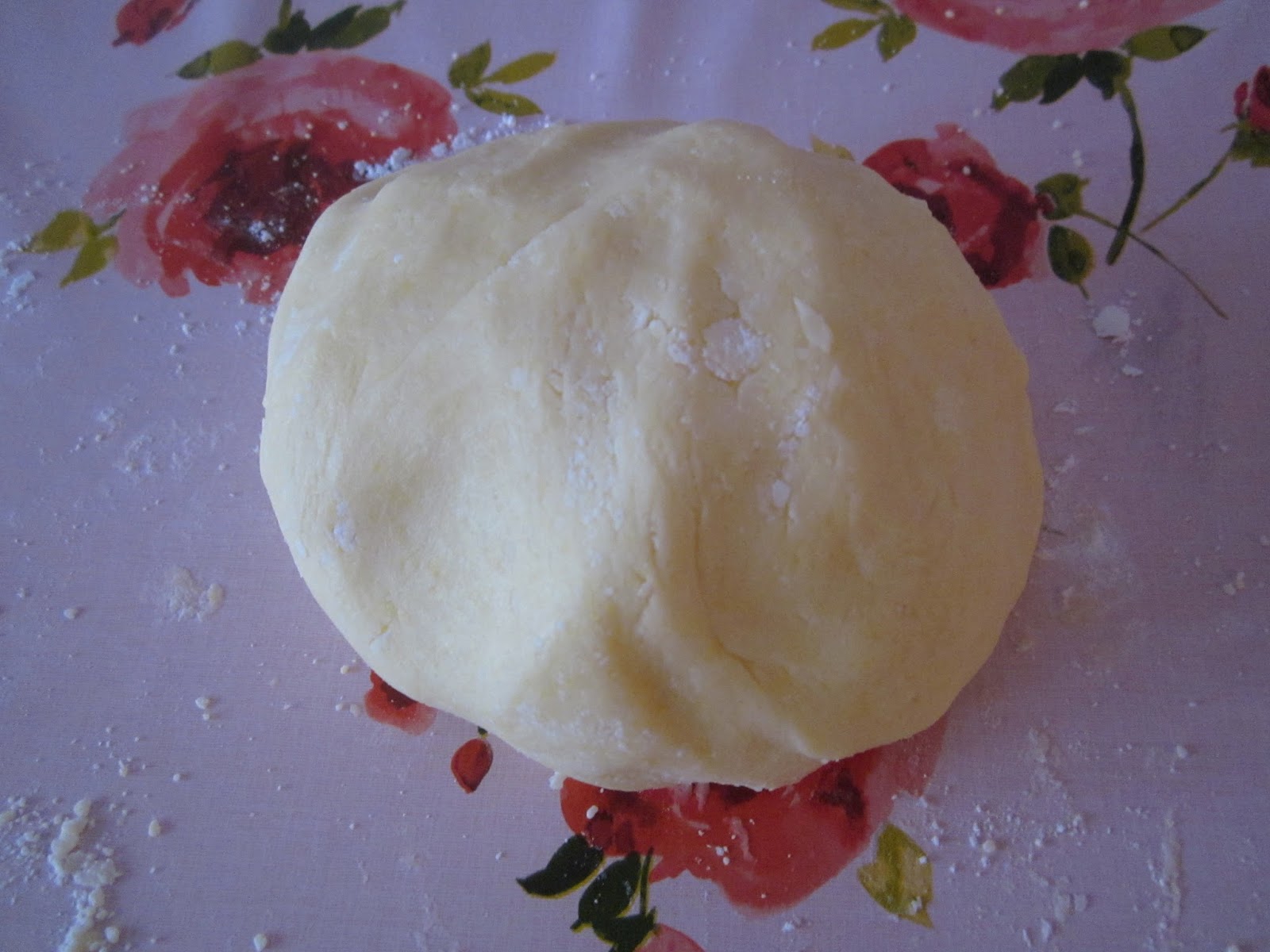 Prepariamo la classica pasta frolla impastando la farina con zucchero, lievito, burro tagliato a cubetti ed infine aggiungendoci le uova, fino ad ottenere un panetto pronto da lavorare dopo averlo fatto riposare in frigorifero avvolto nella pellicola trasparente per circa 1 ora.